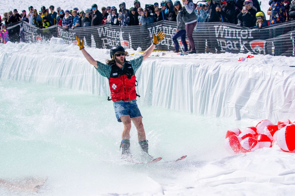 Participation for the pond skim is open to the public ages 18+. Registration is in-person only and will be open at 8am in Balcony House at the Winter Park base area. Registration is limited to the first 100 participants.
