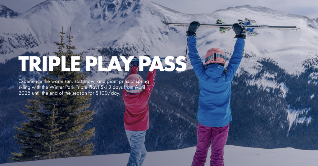 Choose any 3 days to ski or ride for $100/day this spring at Winter Park Resort, from April 1, 2025 until closing.
